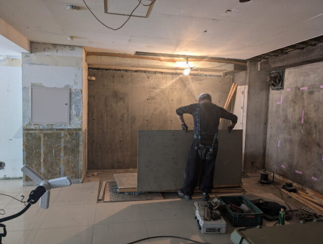 ~原状回復工事に伴う解体工事~   【内部】電気工事、壁・間仕切解体、クロス剥がし、吊下げ什器撤去、一部天井撤去、一部床Pタイル撤去、シール剥がし等 【外部】躯体壁撤去      …